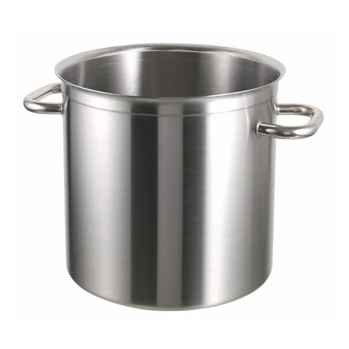 This Matfer Bourgeat Excellence Stock Pot has a 76 Qt. capacity and is made from stainless steel. It includes stainless steel stay‐cool handles that are watertight. This stock pot can be used on all heat sources except induction.