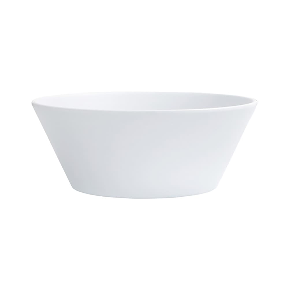 The Cal-Mil 22392-7-15 is a 28 ounce round coupe bowl made from durable melamine. It has a white matte finish that resembles porcelain, offering an upscale look while being sturdy enough for high-volume use. Measuring 6.75" in diameter and 2.5" in height, this bowl is ideal for serving soups, salads, and other large portions.