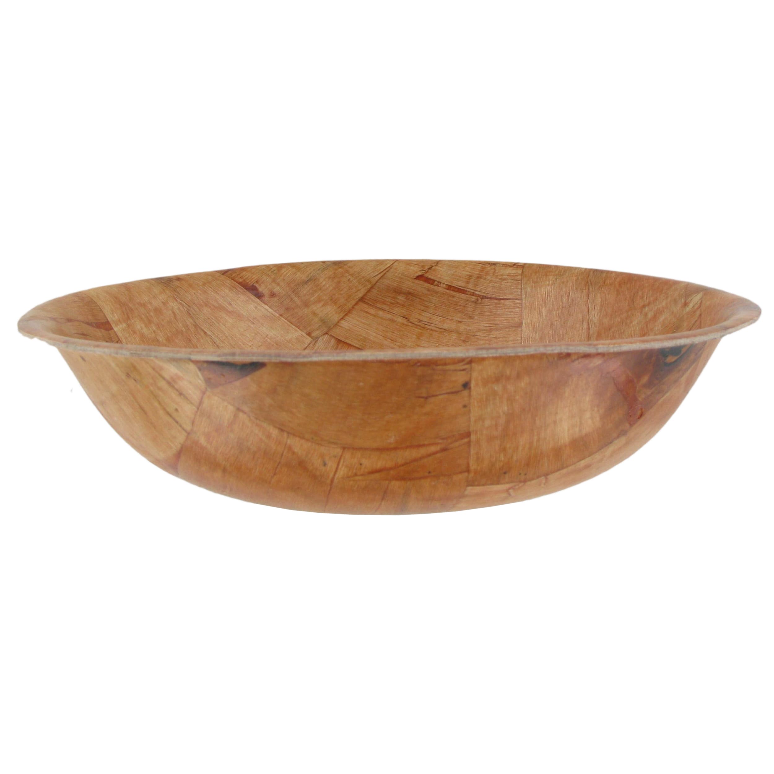 This 8" round woven wood salad bowl from Adcraft features superior quality genuine Keyaki wood, grained with 5-ply thickness. It is safe in dishwashers, break resistant, non-absorbent and attractive!