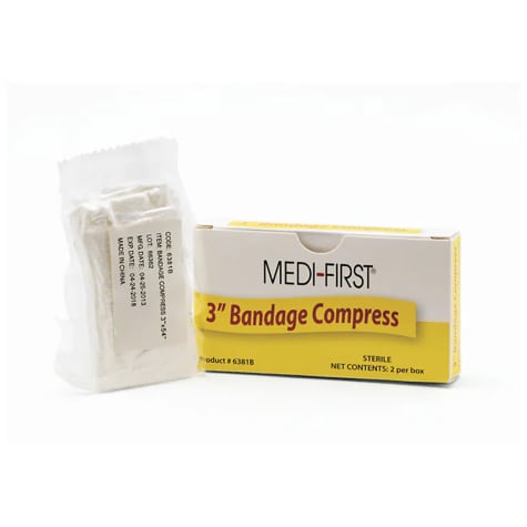 This compress bandage is designed to apply pressure and stop bleeding. Measures 3" long and is sterile.