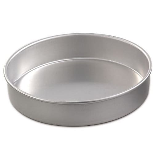 This Allied Metal Cake Pan features 18‐gauge hard aluminum construction and has a straight sided design for even cake layers. It is a 4 x 2" size.