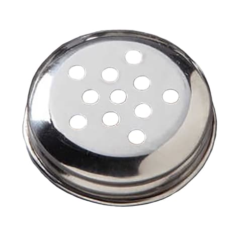 This stainless steel cap fits the 6 ounce round cheese shakers from American Metalcraft, model 3306 (Item 409517).