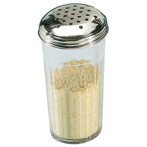 This 12 ounce cheese shaker from American Metalcraft is made from heavy duty SAN plastic with a stainless steel top. It's odorless and dishwasher safe.