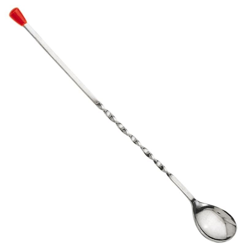 Keep plenty of these twisted bar spoons in stock behind the bar. Their made from polished stainless steel with a red knob.