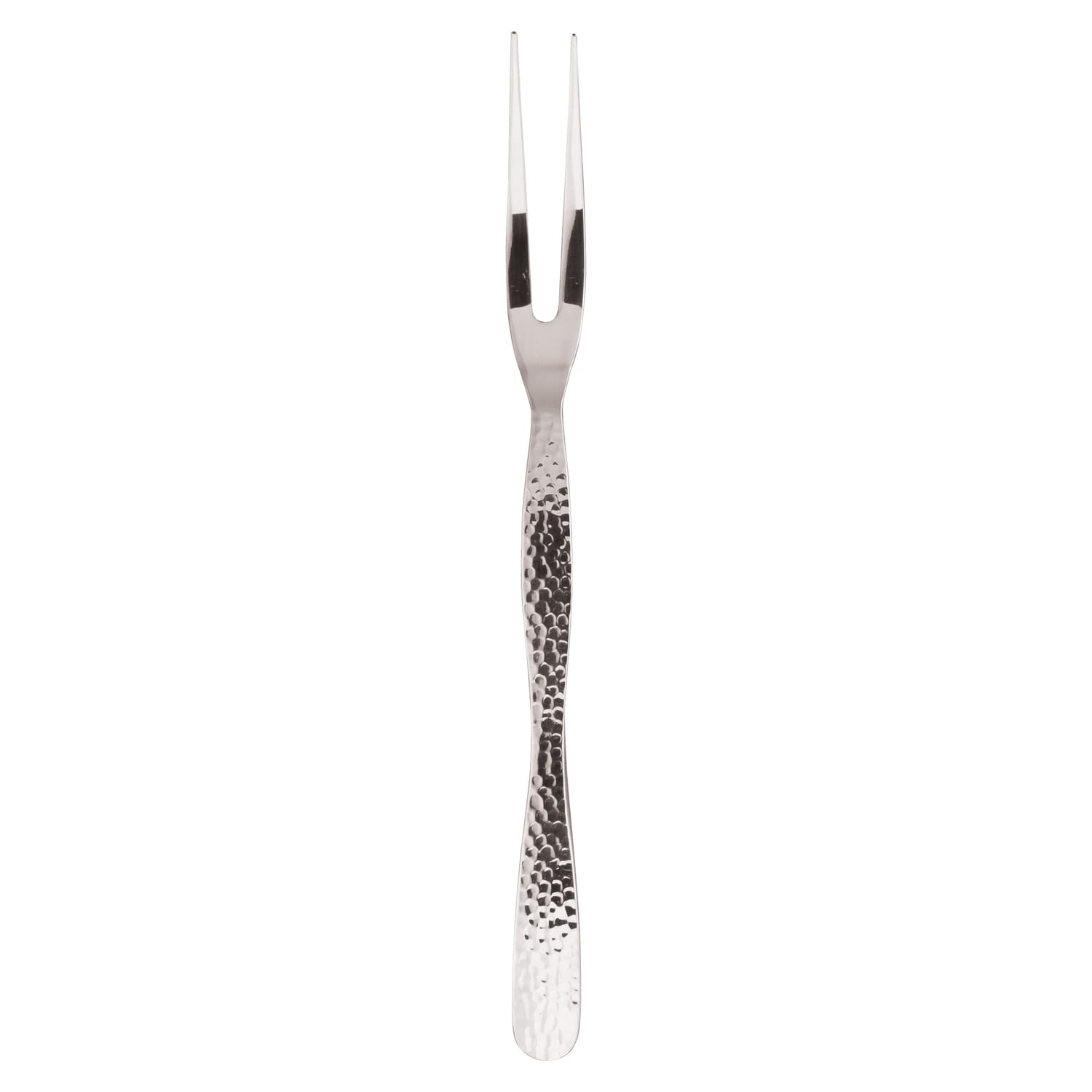 This stainless steel fork has 2-tines and a hammered handle. It's a beautiful way to serve meats to your guests.