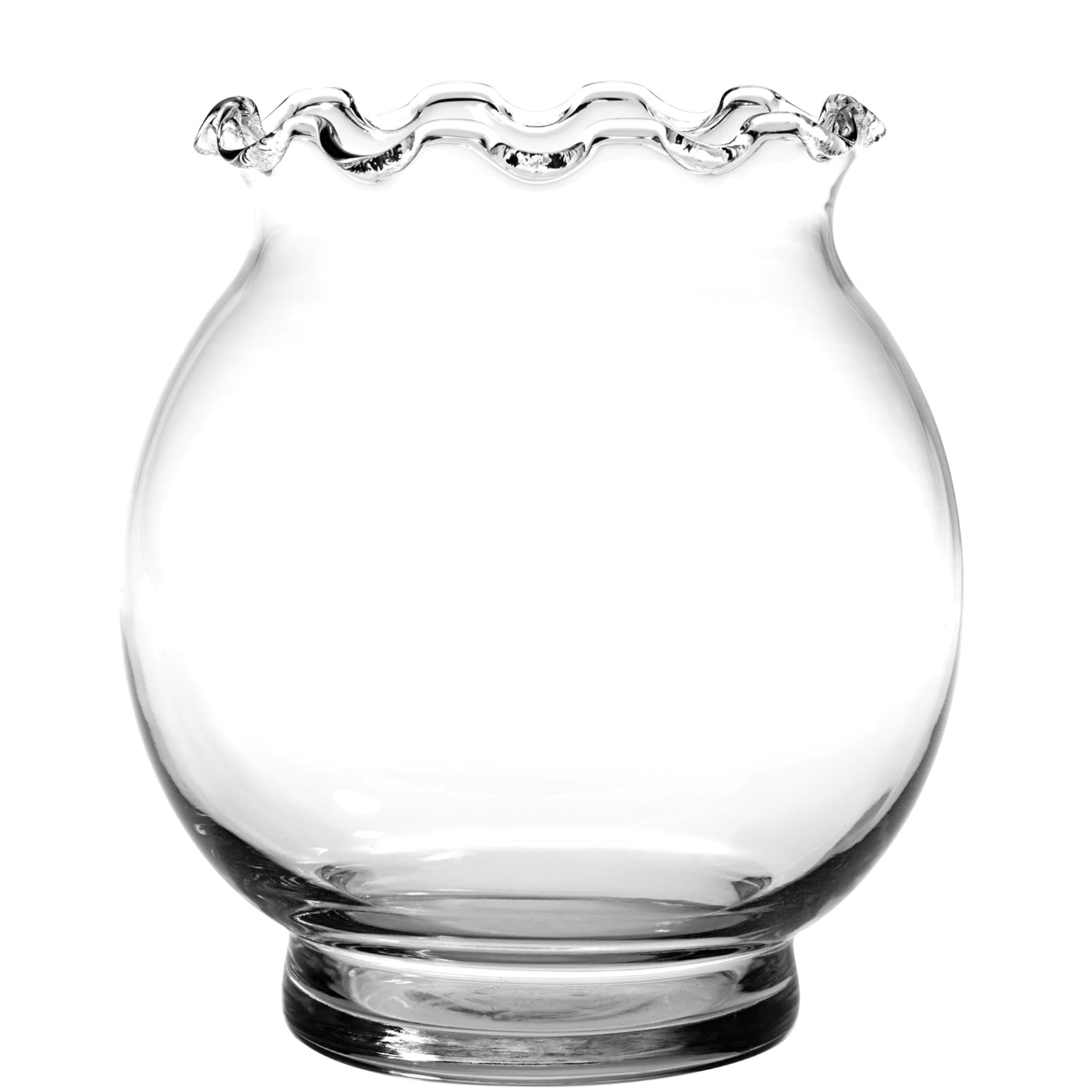 This footed 5 glass ivy ball has a low foot and a fancy fluted lip.