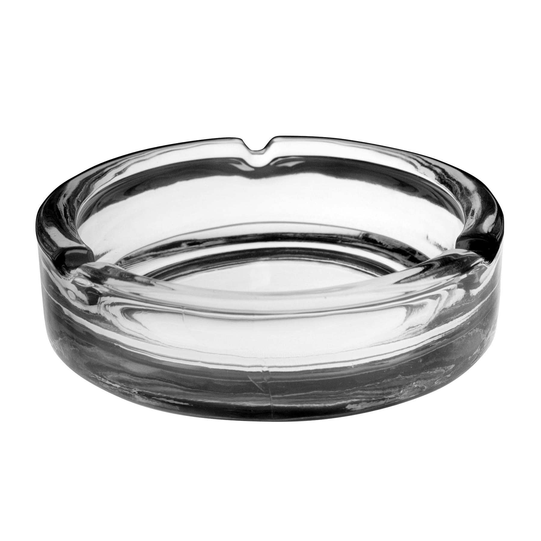 This Anchor Hocking® 5.75" Executive glass ash tray is used for placement on a table for smoking guests to hold cigarettes at a restaurant where smoking is allowed. The ashtray helps keep the area clean and free from cigarette butts.
