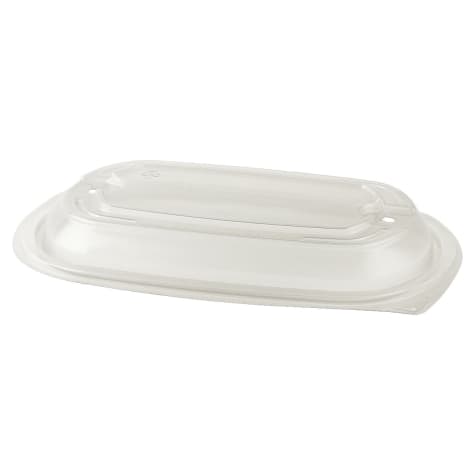 These clear polypropylene dome lids features a smooth, sleek look that provides an unobstructed view of food contents with wide, rib-free panels. The integral Clear Guard® anti-fog technology and vented dome lid keep food contents visible and eliminates order errors. The leak-resistant closure prevents messy spills and the stackable design preserves the food presentation on display or in the bag.