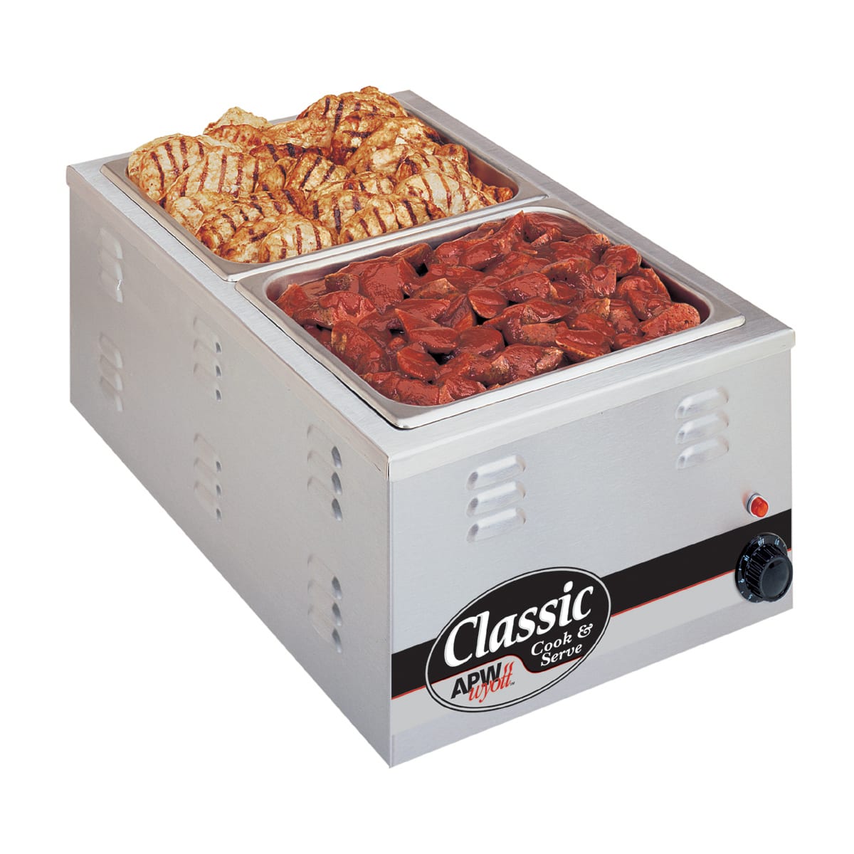 The CW‐2A 22 Qt. countertop food warmer can preheat to 212°F in just ten minutes. An innovative "Serpentine" shaped heating element design evenly distributes heat throughout the warmer, providing every guest with a consistently warm product. Perfect for soups, chili, and other dishes that need a quick thaw during the cooking cycles and a gentle warming heat for serving. Both the exterior of the warmer and the interior liner are made of durable stainless steel and are easy to clean. The CW‐1B is designed to cook and hold pre‐cooked foods from a frozen state. Each unit is equipped with a 60 degree three‐wire grounded power cord which terminates with a standard three‐prong male plug.