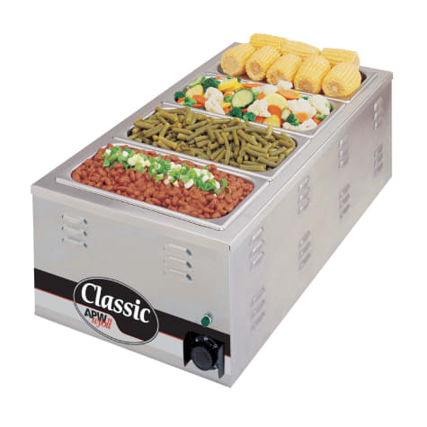 The CW‐3A 28‐1/2 Qt. countertop food warmer can preheat to 212°F in just ten minutes. It's thermostatic controls give you complete control over the cooker's temperature, allowing you to heat products rapidly and then adjust to proper holding temperatures. The innovative serpentine shaped heating element design evenly distributes heat throughout the cooker, providing every guest with a consistently warm product. Both the exterior of the warmer and the interior liner are made of durable stainless steel. The CW‐3A is designed to cook and hold pre‐cooked foods from a frozen state.