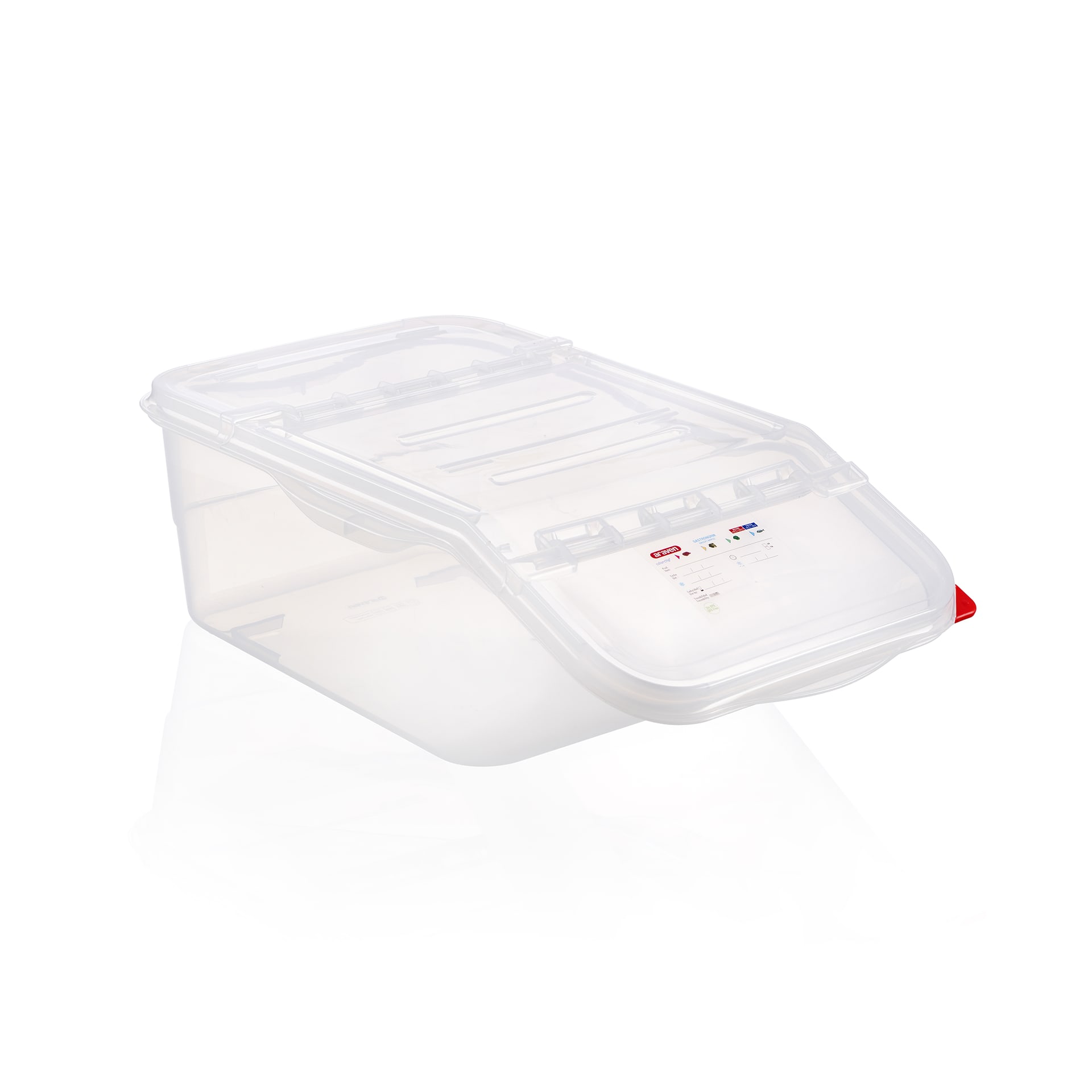 This Araven Ingredient Bin can be used for food storage and preservation. It is ideal for storing food with very low levels of humidity. This bin includes a lid for filling and another for removing food. It has a 6 Gallon capacity.