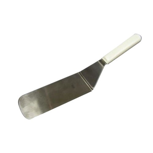 This 8" x 3" spatula features a beveled edge and is perfect for any kitchen! It features a solid, one piece construction and is made using high carbon stainless steel.