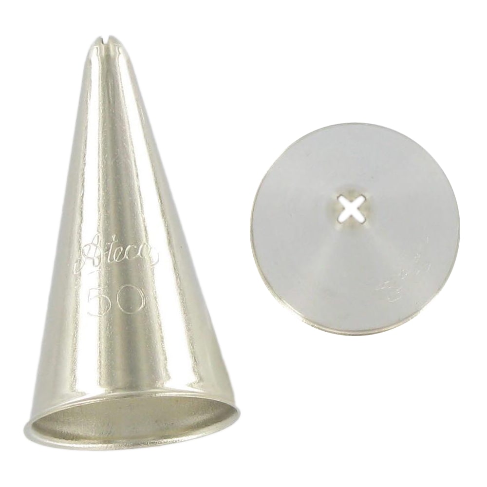 This standard size #50 pastry creates a cross or X" shaped piping. Use with standard couplers and is dishwasher safe.