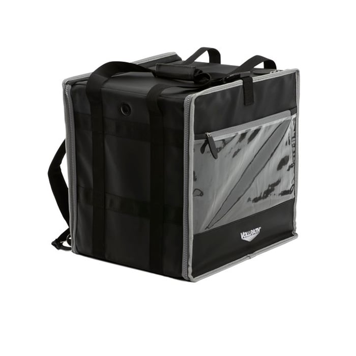 This backpack catering bag from Vollrath is constructed of high-performance insulation to maintain the temperature and quality of food on the go. The backpack-style straps make delivery comfortable and easy and the hot food generates heat in the bag while the high-performance insulation helps retain the heat, keeping food as warm as it is delicious.