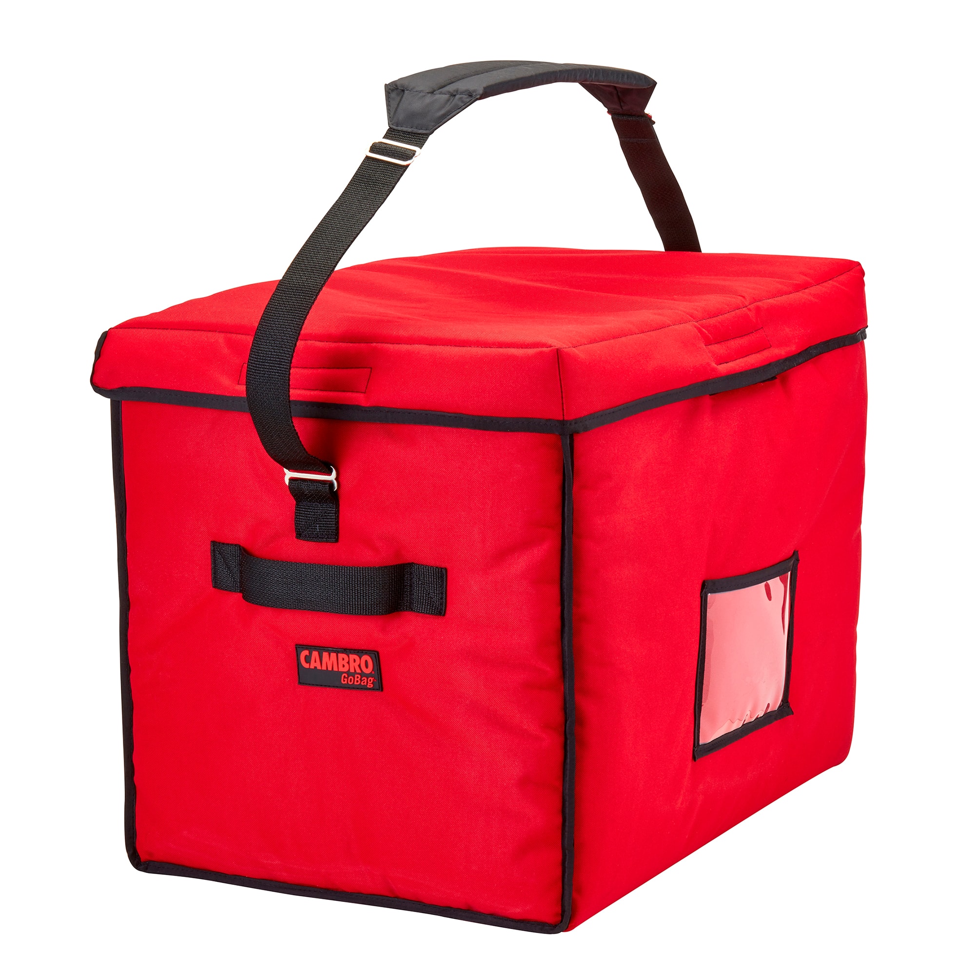 With Cambro GoBags you get a secure, fresh delivery experience. These bags are made using a high density insulation to protect food temperature and quality from kitchen to delivery. Constructed with heavy duty, sewn in straps and a clear ticket pouch, this delivery solution is engineered for savings and safety.