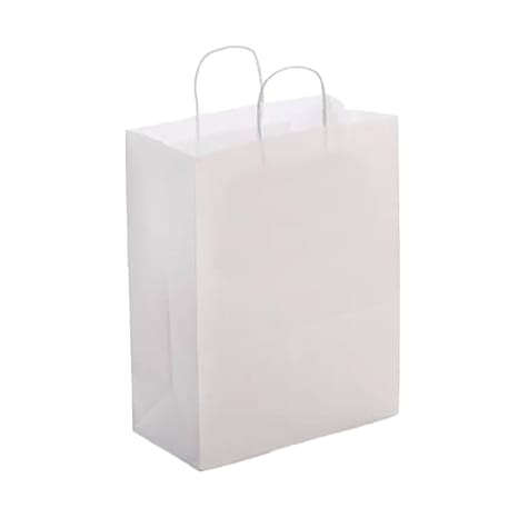 This shopping bag has strong, east to hold twist handles and are great for take‐out meals or a sack of groceries.