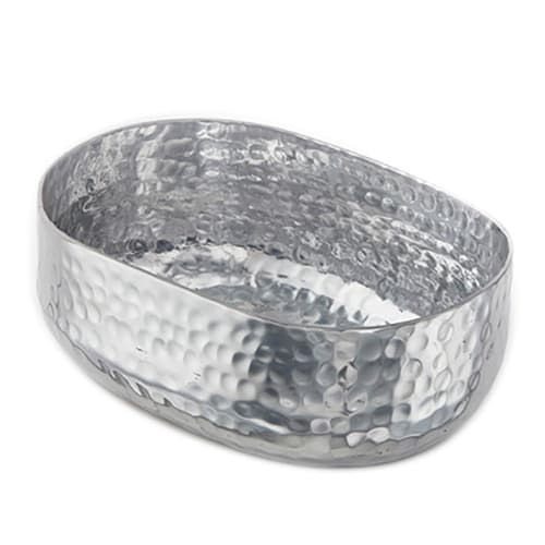 This silver oval basket from American Metalcraft is perfect for presenting all kinds of entrees and sides. Your customers will love the artisanal aesthetic created by the individually hammered design.