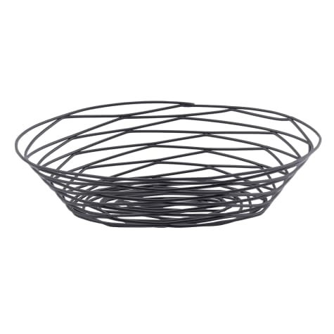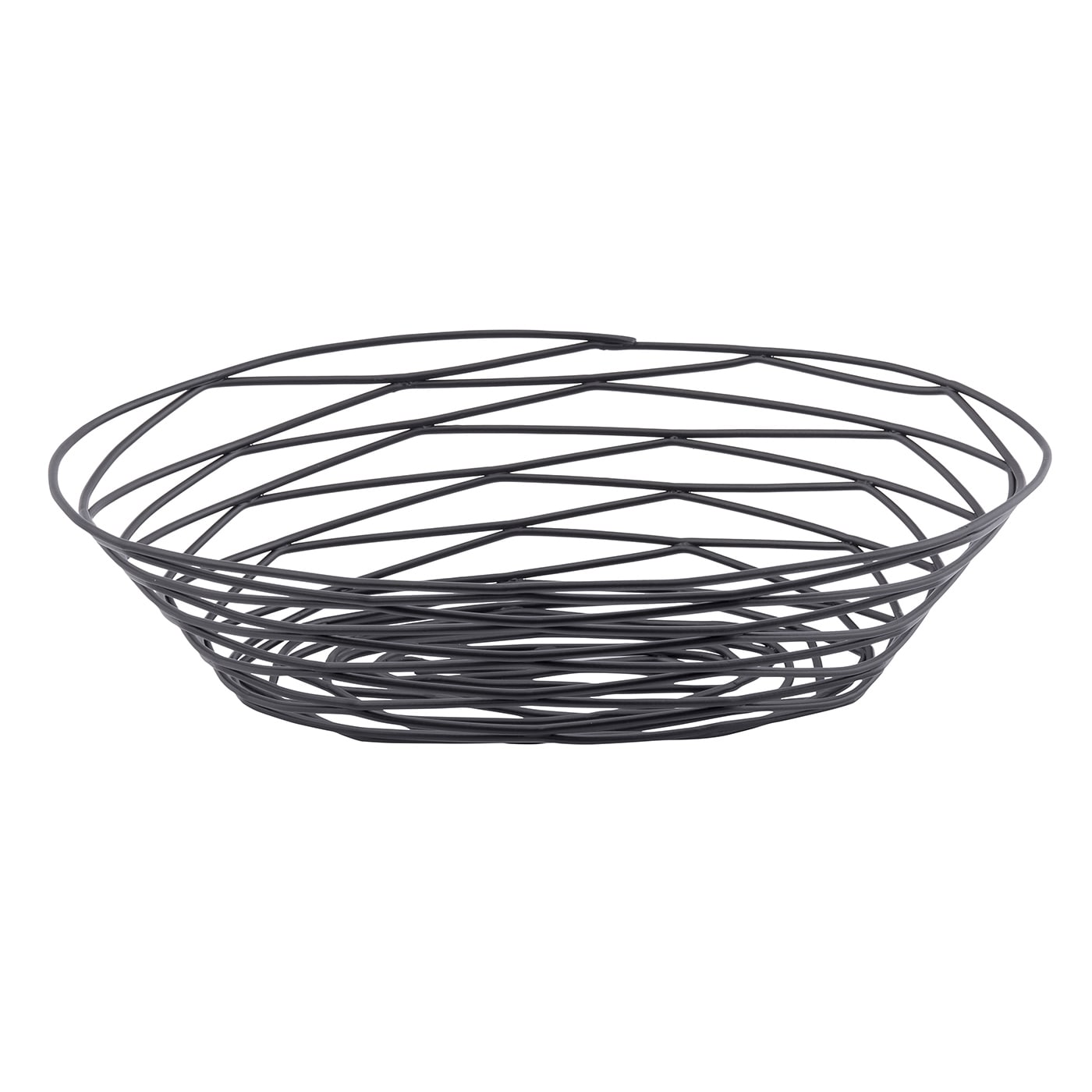 This modern basket is versatile enough to serve your favorite breads or just to display fruits and vegetables. It's part of the Artisan Collection and features an oval shape and black powder coated metal.