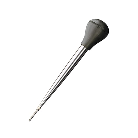 The Frieling seasoning syringe is ideal for larger cuts of meat such as a leg of lamb or pork. Use this syringe to infuse meats with marinades, light and dark stocks or flavored oils with no mess. The stainless steel cannula and the non‐slip silicone ball can be unscrewed for cleaning.
