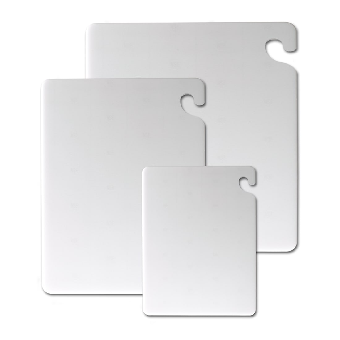 This San Jamar® Cutting Board is a white color and comes in a 24" x 48" size with a 1/2" thickness.