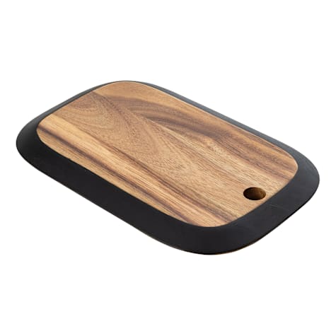This Acacia Collection™ Serving Board is a stylish and durable rectangular board crafted from premium acacia wood. It features a sleek black edge that adds a modern touch to its natural wood finish. Ideal for serving charcuterie, cheeses, breads, and desserts, this board combines rustic charm with contemporary elegance. Its moisture-resistant surface ensures easy cleaning, while a convenient keyhole allows for hanging storage. Add a personalized experience by using a chalkboard pen to label your cheeses or note allergens right on the black painted wood edge. Perfect for both home entertaining and professional foodservice settings