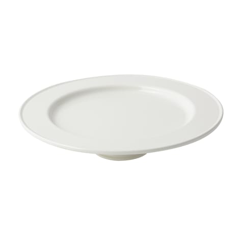 This cast aluminum 13" round cake stand features a white sandstone finish and has a 3" high pedestal.
