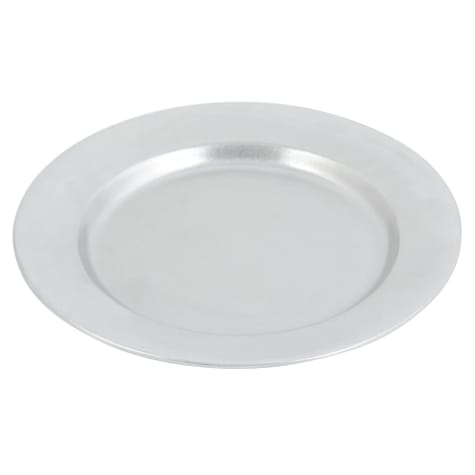 This Bon Chef Contemporary Dinner Plate is a 10.5" size and is perfect for serving main courses. It is made from aluminum alloy and comes in a pewter glo color. It is 100% food safe and can be used with hot or cold foods.