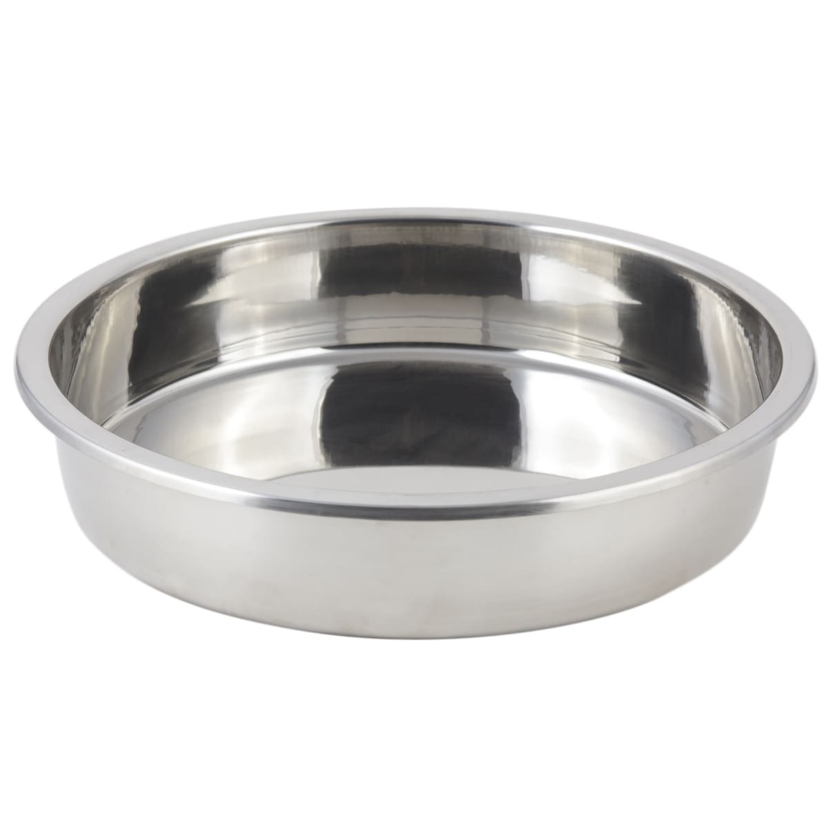 This 2 gal round food pan is made of stainless steel and fits all Elite Series round chafers, as well as Manhattan and Olympia round chafers.