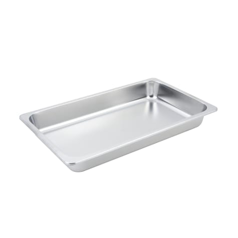 This 2 gal rectangular food pan is made of stainless steel and fits full size rectangular chafers.