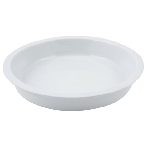 This 15‐1/4"" round food pan is made of ceramic and fits large round chafers.