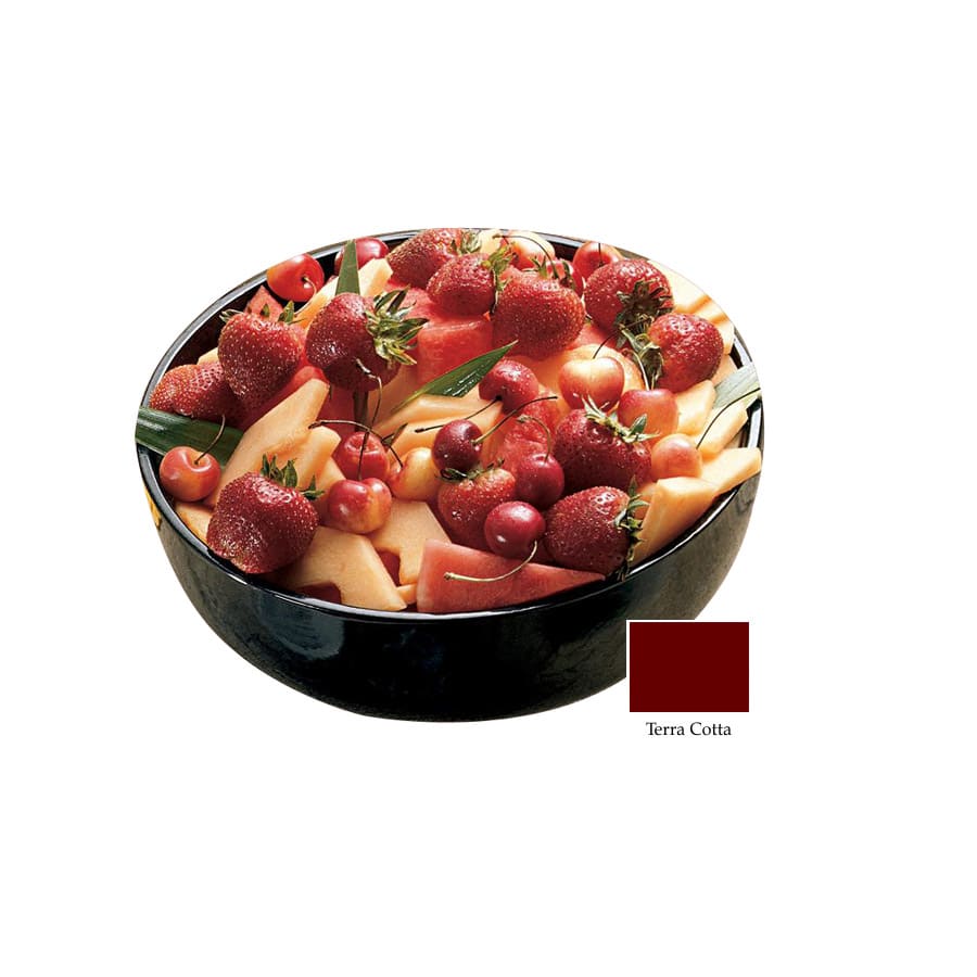 This large, 3 quart bowl from Bon Chef is 10‐1/2" in diameter and features a terra cotta color. It is made of sandstone and looks like ceramic but is durable, unbreakable and maintains consistent food temperatures. Perfect for restaurants or catered events.