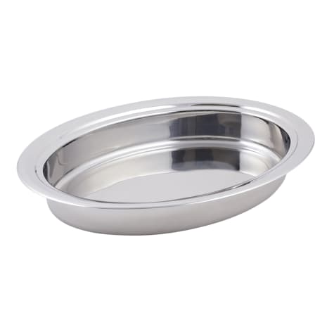 This 20" x 15" oval food pan is made of stainless steel and features a fully stackable design that saves you storage space.