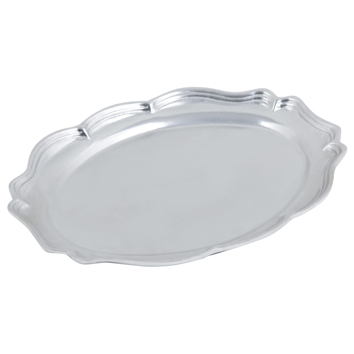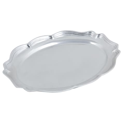 Add an elegant touch to your serving table with this 16.75" x 22" Queen Anne platter. It is made of cast aluminum with a pewter glo finish and gentle edge styling that resembles flower petals.