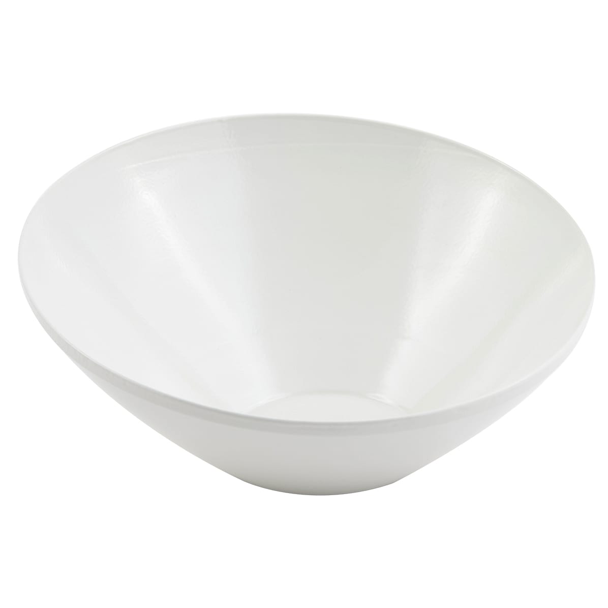 This 8‐1/2" slanted bowl is made of cast aluminum with a white sandstone finish.