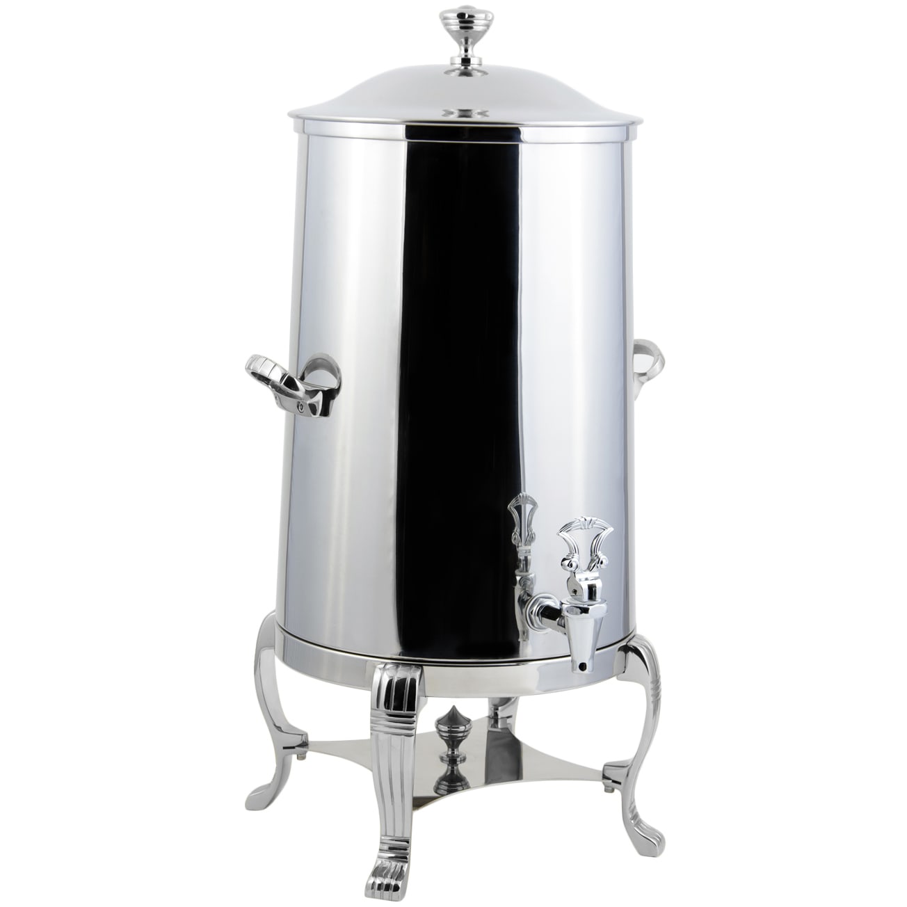 This 5 gal insulated coffee urn is elegant and functional. Made of the finest quality stainless steel with chrome‐plated trim with the vertical grooved decorations of the Aurora design.