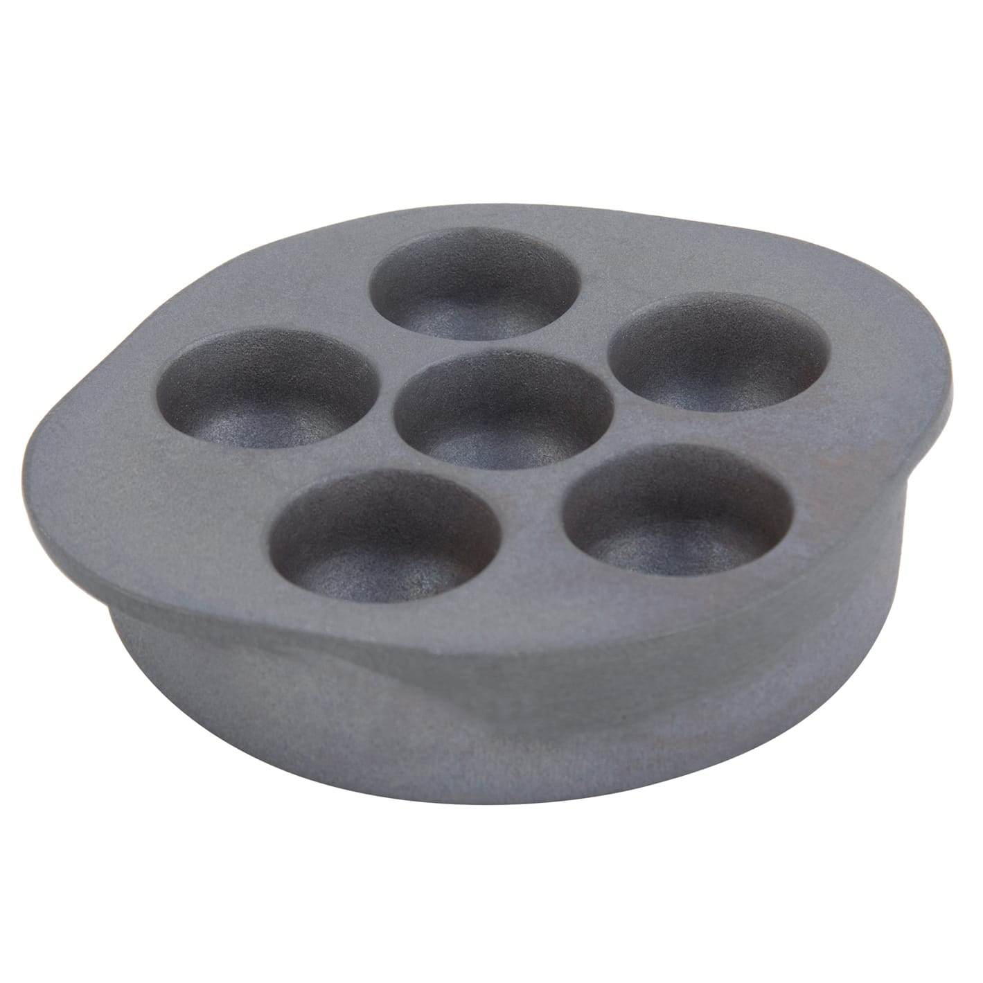 This 6‐1/2" oval snail dish is made of cast aluminum with a matte black Tempo finish and has six total holes.