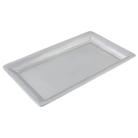This full size food pan and display pan is made of cast aluminum with a pewter glo finish and is 2" deep. It can be used alone, in a single buffet well, or with display stand 7002 for a three‐tier presentation.