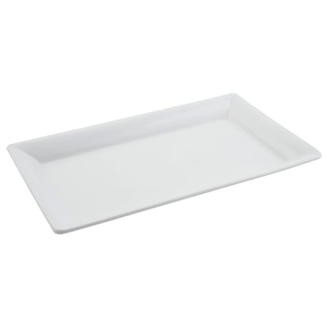 This rectangular 12" x 21" display pan is made of cast aluminum with a white sandstone finish and can be used alone, or with display stand model 7002 for a stylish 3‐tier presentation.