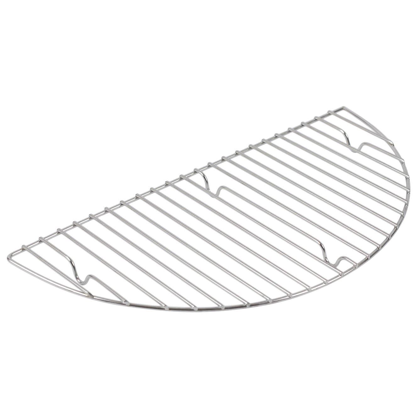 This 6" x 13" half‐round wire grill grate fits on top of round food pans 5073 & 5074 and half‐round food pan 5073‐1/2, both for cooking and serving grilled foods.