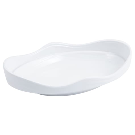 This 12" x 8" oval Euro bowl is made of durable white melamine and is 2‐1/2" deep. This bowl can be used with the Bon Chef tile 53006 (Wasserstrom item 345056).