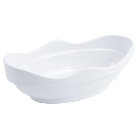 This white 11" x 6" oval Euro bowl is made of durable white melamine and is not for steam table use. Can be used with Bon Chef tile 53007 (Wasserstrom item 795509).