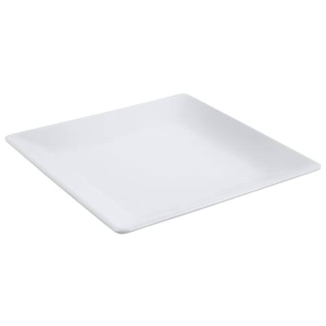 This 11‐3/4"" square platter from Bon Chef is perfect for restaurants or banquet facilities. It is made from durable melamine and the white color and simple design will blend with any dining decor.