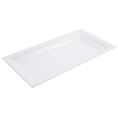 This 19‐1/8" x 10‐3/8" rectangular display pan from Bon Chef is perfect for restaurants or banquet facilities. It is made from durable melamine and the white color and simple design will blend with any dining decor.
