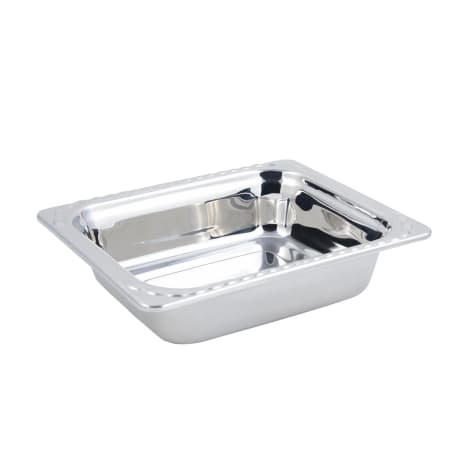 This 3 Qt. half size stainless steel food pan features the narrow ridges of the Arches design along the rim.