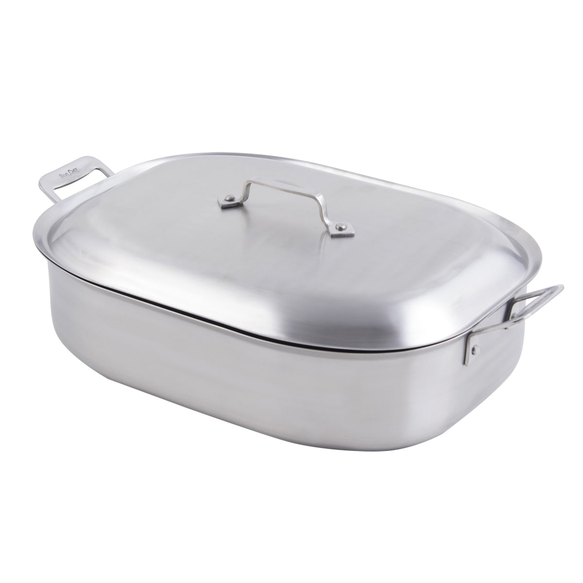 Upgrade your cookware to professional grade with this 7 Qt. Cucina French oven. It's made of high quality stainless steel and is perfect for both food prep and food display. It is good for use on both traditional and induction ranges, as well as in ovens.