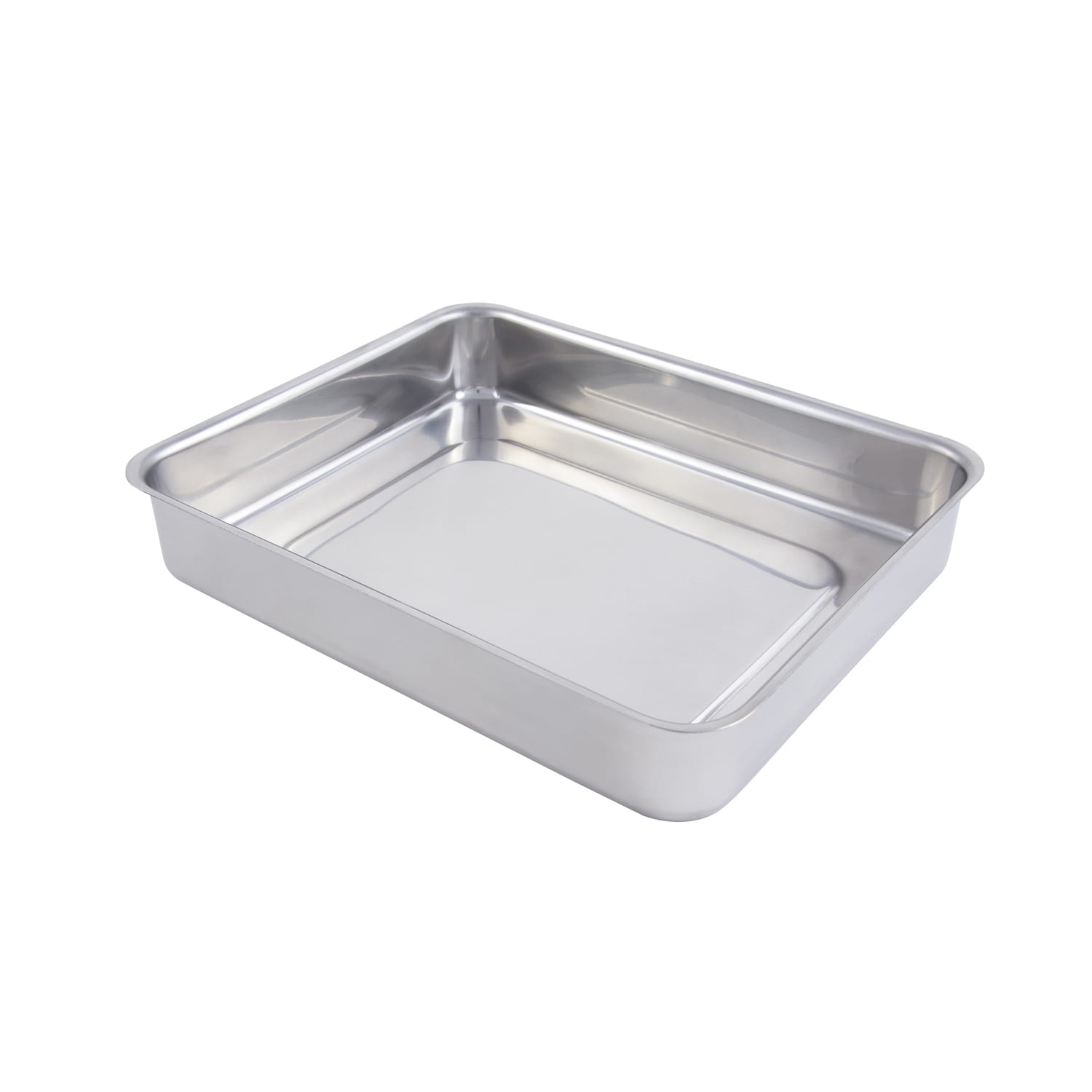 This small 3 Qt. Cucina food pan is made of quality stainless steel. It can be used for both prep and display and on either a traditional or induction ranges, as well as in the oven.