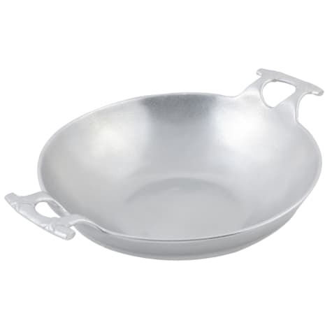 This 8 quart wok is made of cast aluminum with a pewter glo finish and makes a stylish option for serving Asian dishes. Safe for use on the stove top or in the oven.