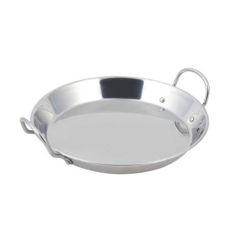 This 13" round Spanish tray has an induction‐capable bottom for more effective heat transfer and distribution. Made of stainless steel so it's durable and easy to clean.