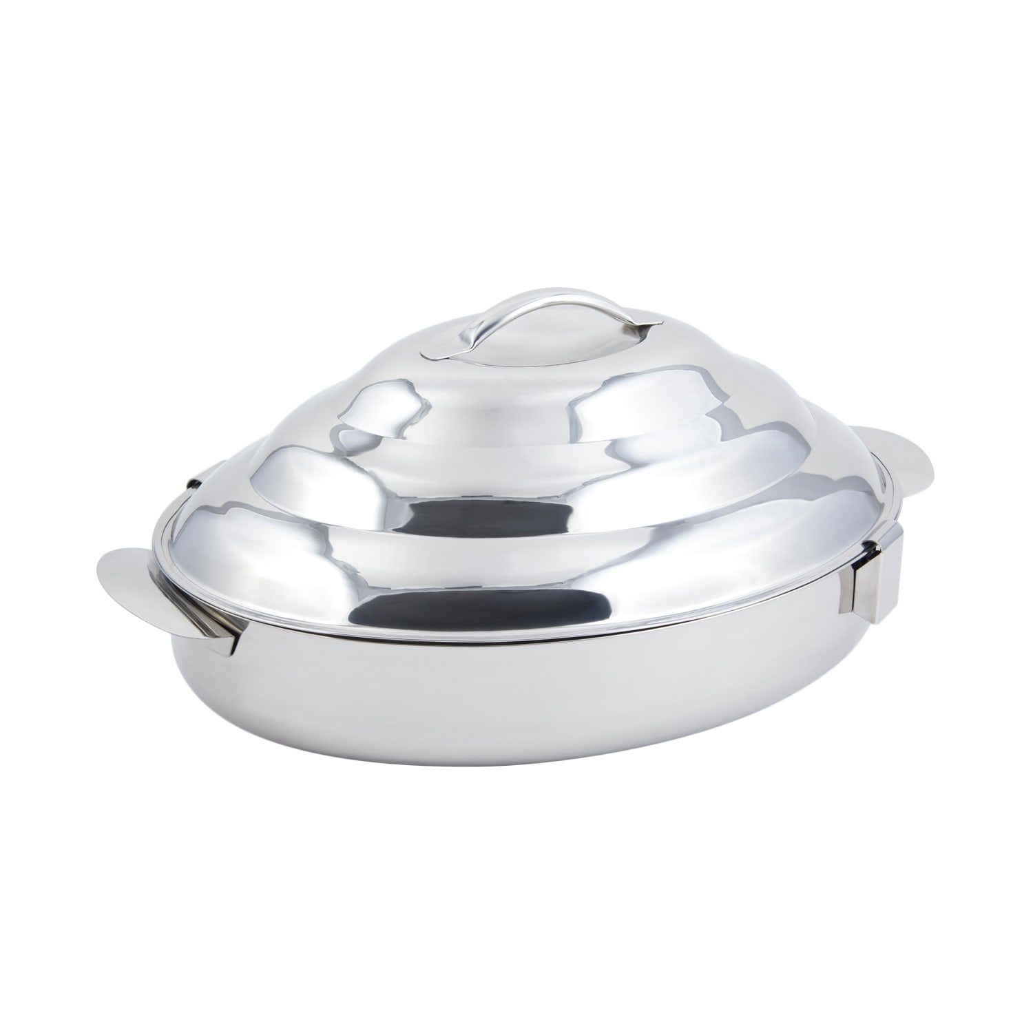 This 23‐1/4"" x 15" insulated oval server is made of stainless steel and includes a locking lid. It's perfect for catered events.