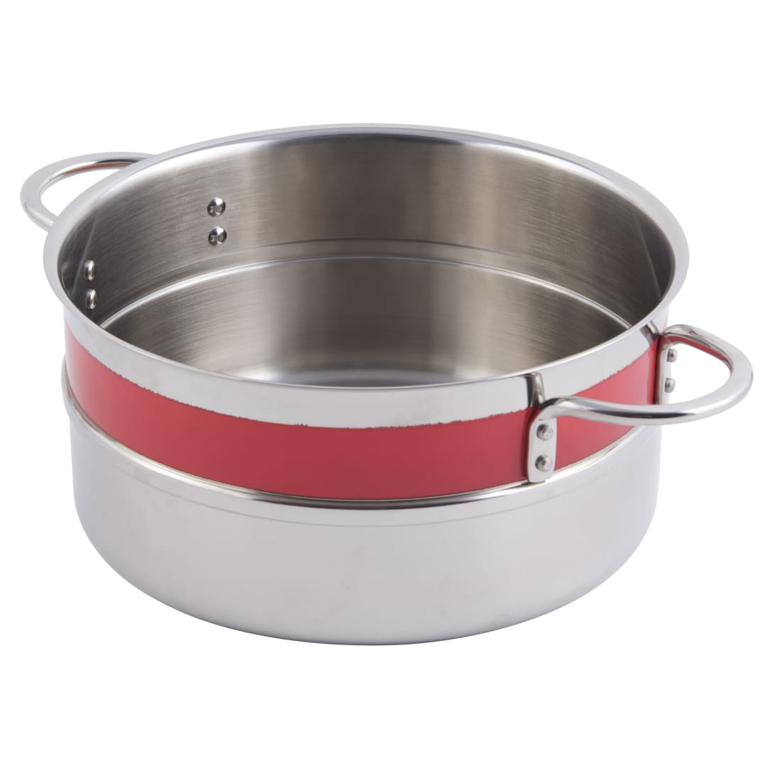 This single wall pot from Bon Chef has a capacity of 3.3 quarts and is part of the Classic Country French Collection. This pot is 8‐5/8" in diameter and features stainless steel construction with an aluminum core. It is great for steam table use and includes two riveted handles. This pot does not include a cover.
